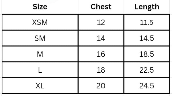 *Sizing differential on all items compared to chart.