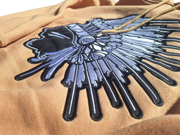 This custom heavyweight hoodie is high quality with 350 GSM material. Durable and ideal for winter and cold temperatures. This hoodie is made of sustainable pre-shrunk cotton, a material that is nice and smooth to ensure your hoodie is cozy and soft on the inside. but also looks more premium and classy on the outside. In addition, it has side pockets, black inside cap, and a custom Warrior Chief embroidery design created by The Pueblo.